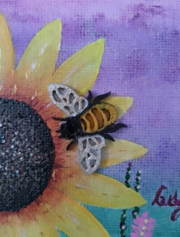 For that different detail in the painting I have added three MDF flowers, a bee and a butterfly to create an almost 3D effect.