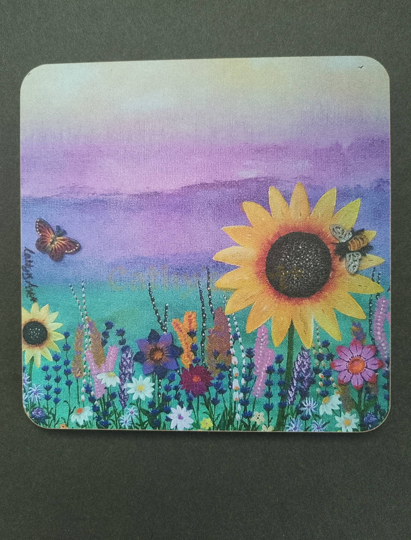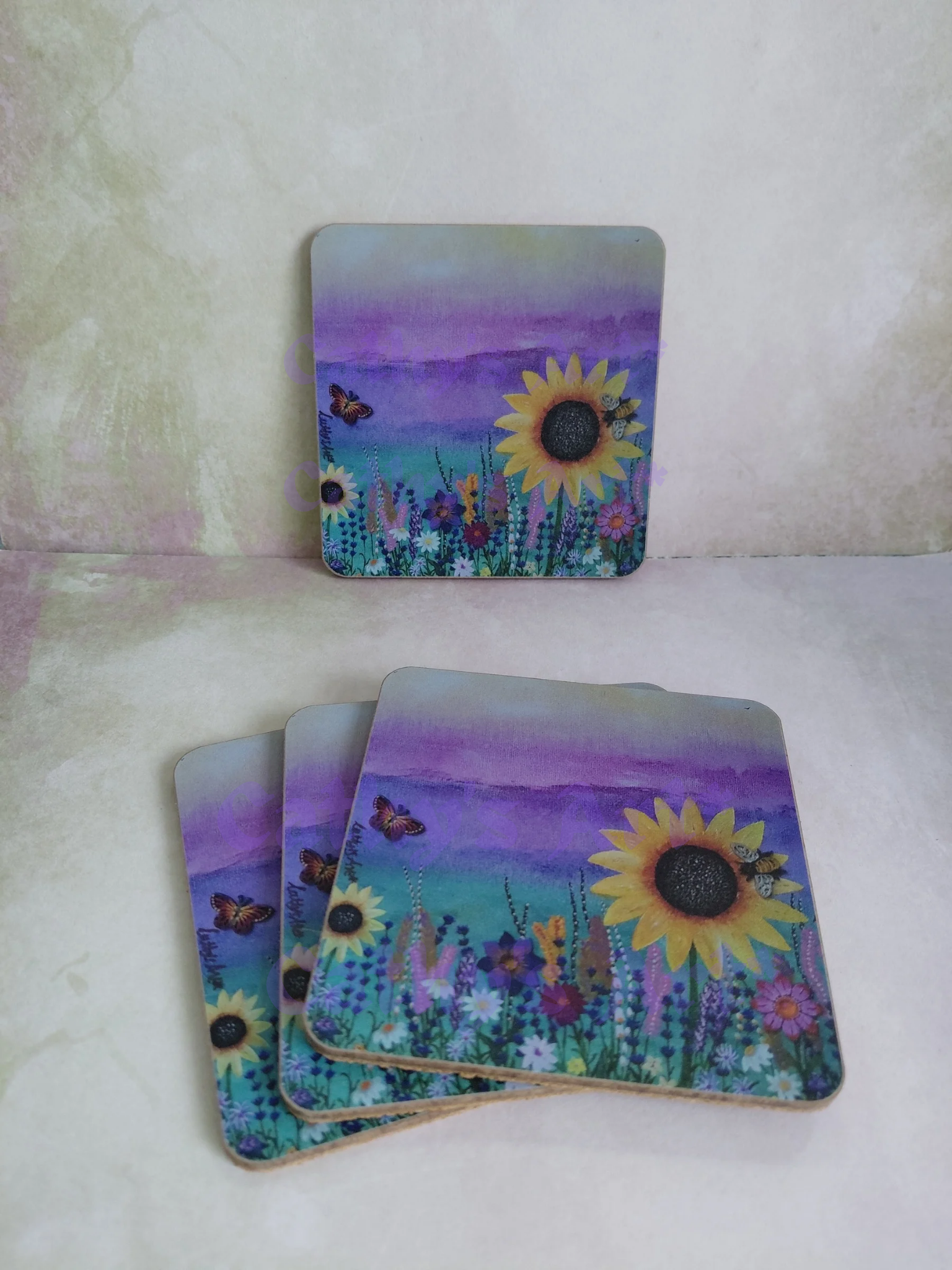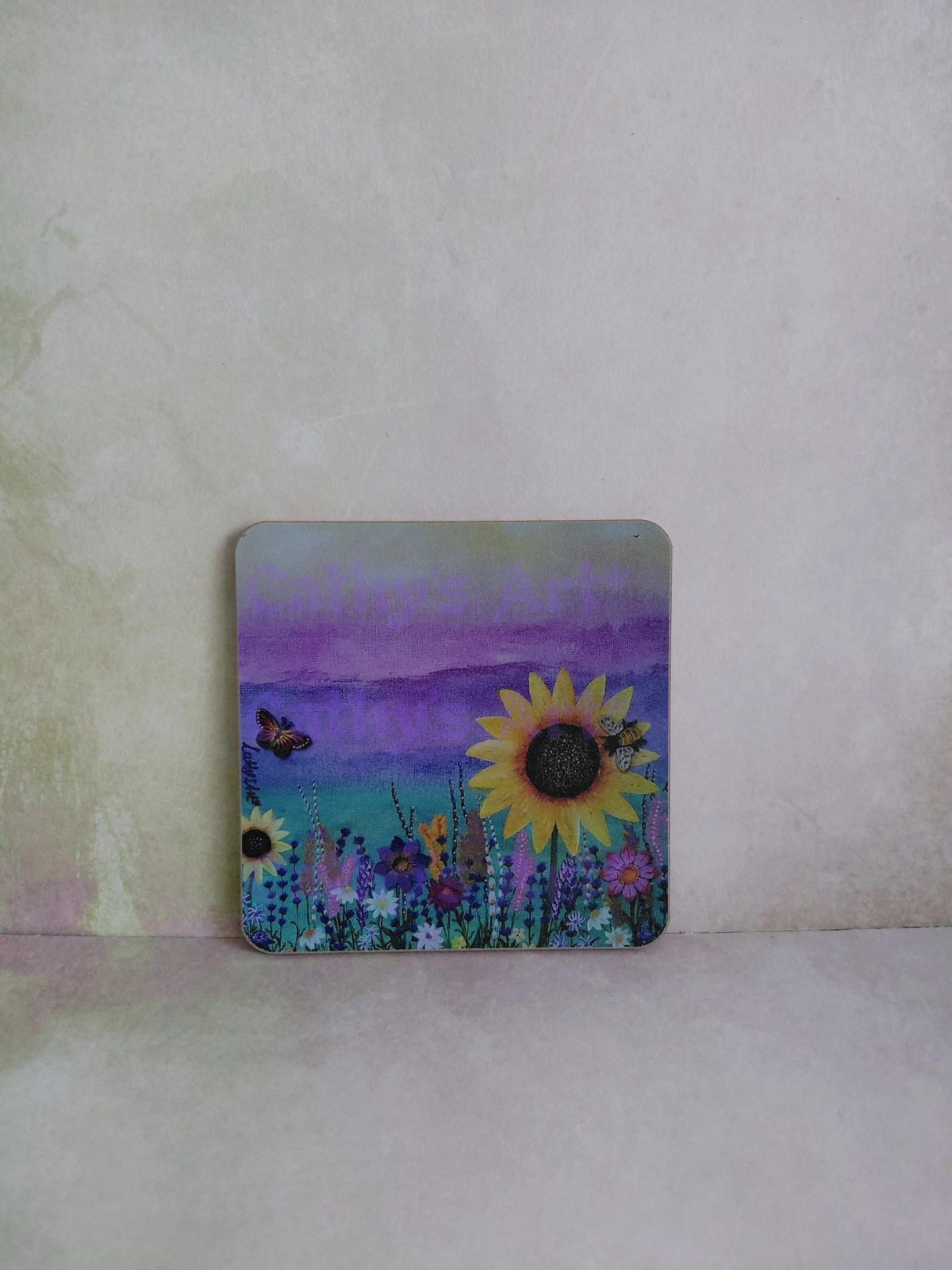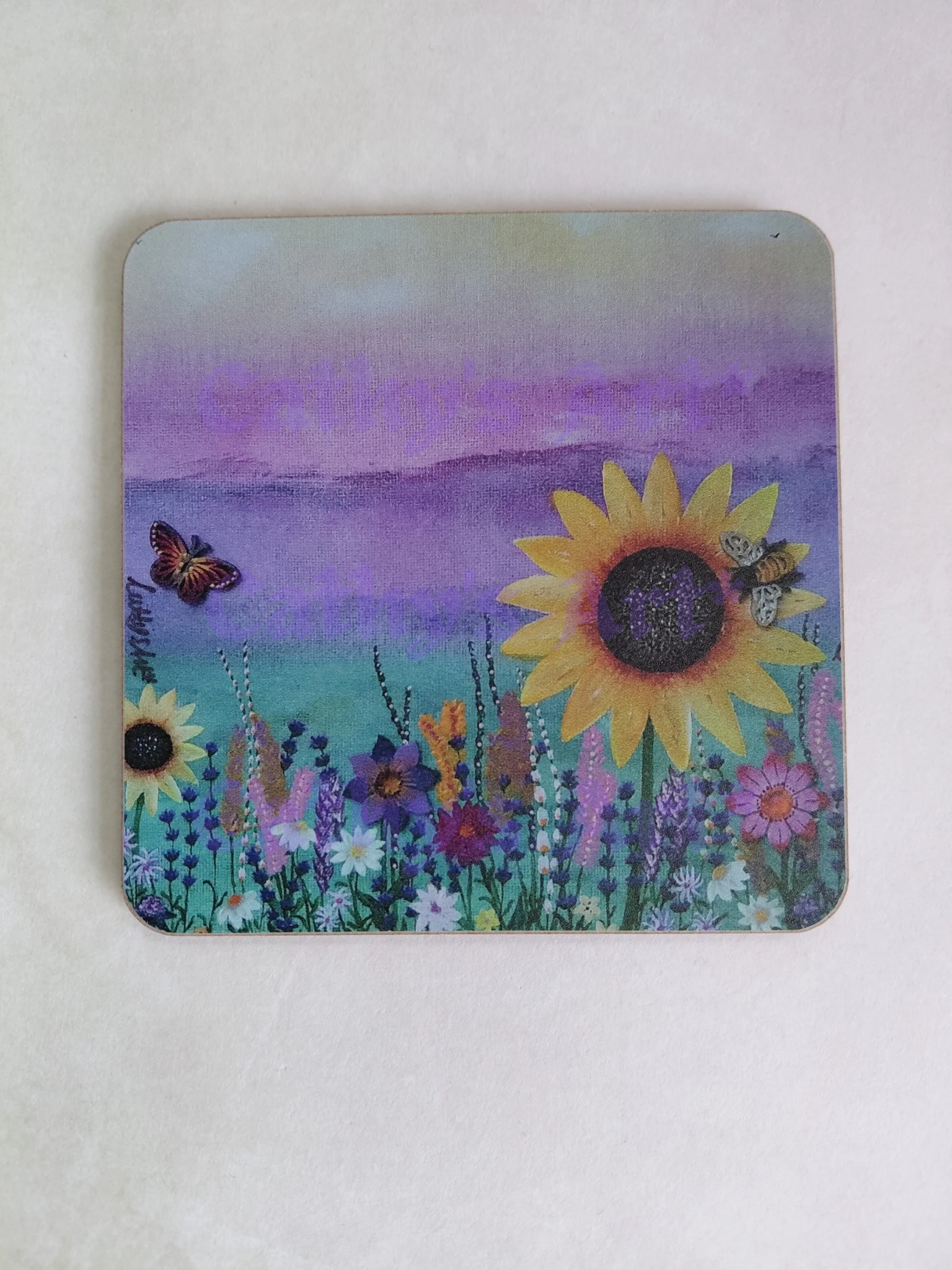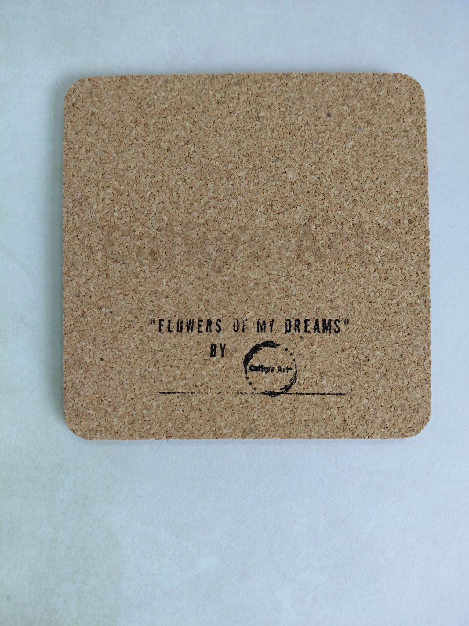 "Flowers of my dreams" is available on cork-backed wooden coasters.