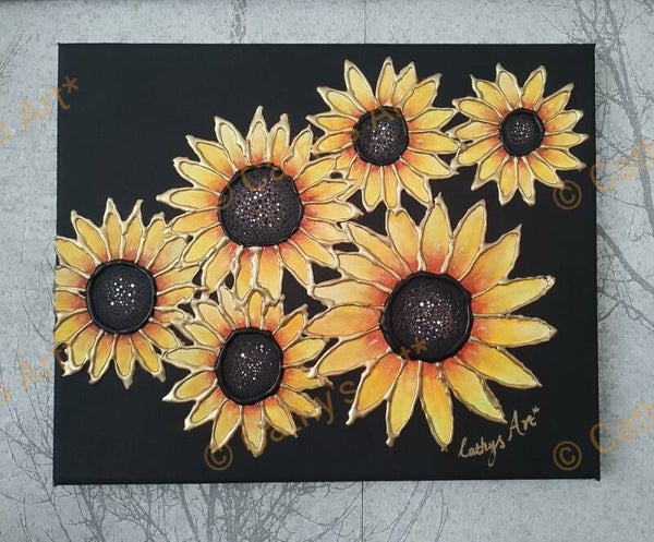 Original Acrylic Painting with 3D Flowers " Sunflowers"
