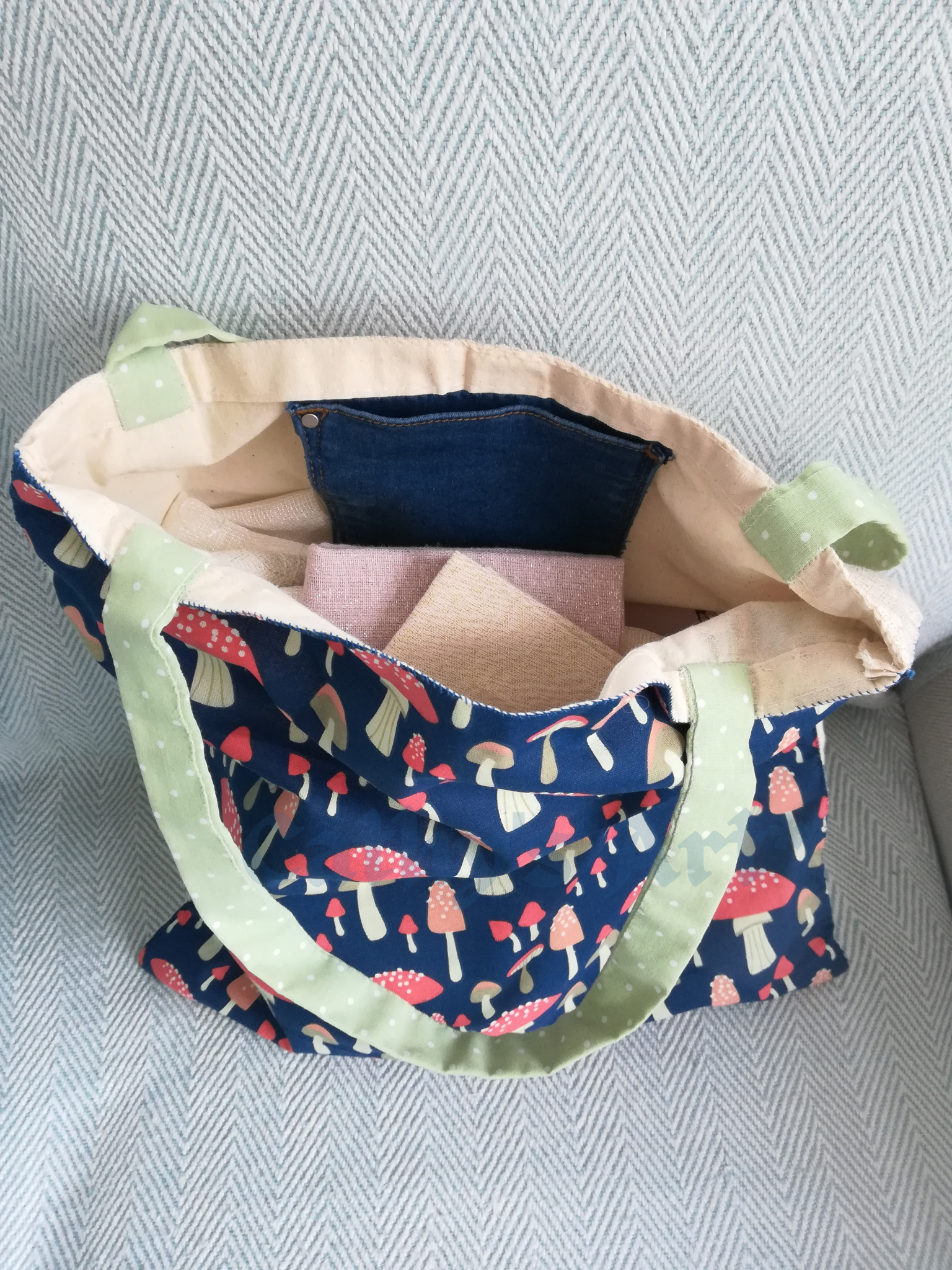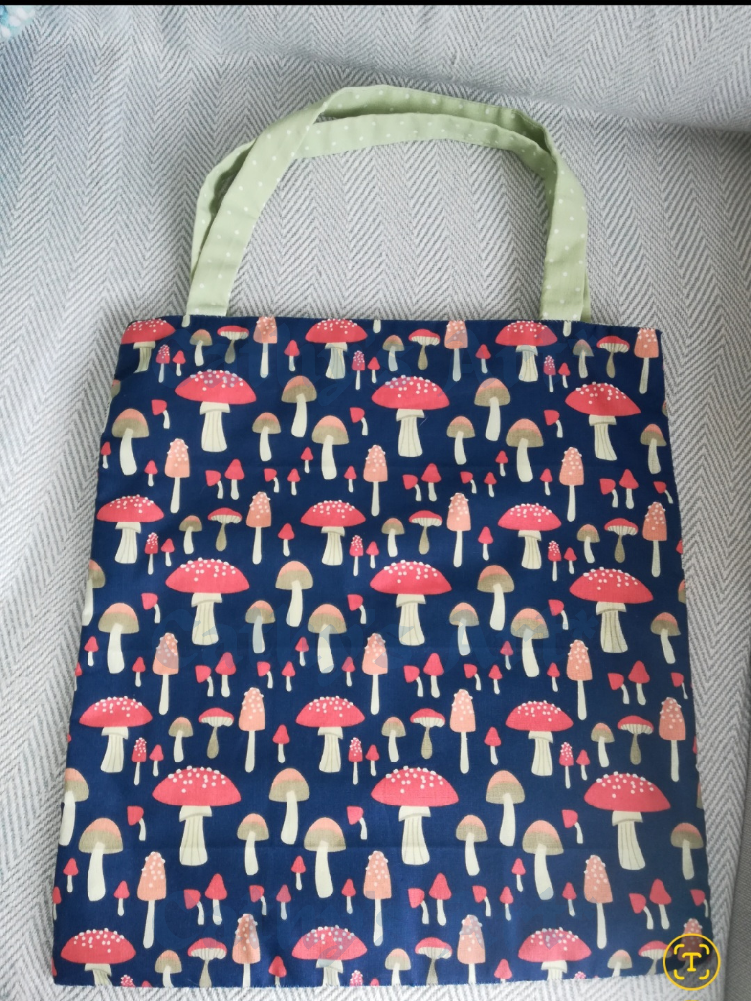 A lovely tote bag for shopping or every day use, with a quirky mushroom theme.